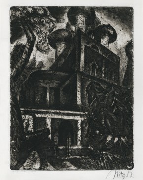Kloster, Moskau [Monastery, Moscow] (no. 2 from the Moskau album), 1921, zinc etching, paper: 52.3 x 41.4 cm., plate impression: 42.6 x 32 cm., LL: "No. 2 Kloster Moskau", LR: "Uitz B." Provenance: Bajkay 1987, #435.
