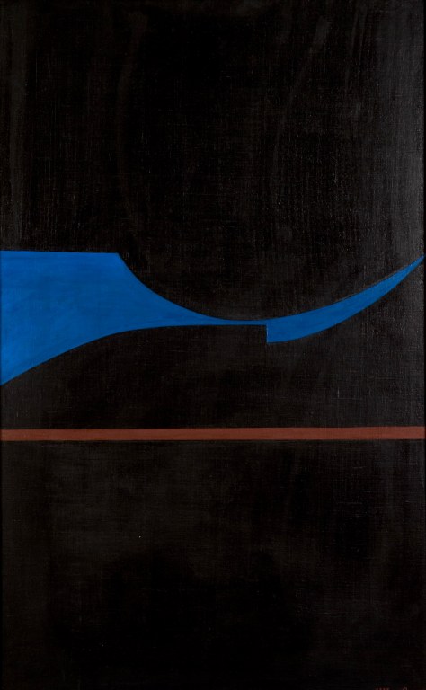 Black and Blue Symphony 1985, oil on canvas, 125 x 78 cm., LR: "1985 Barcsay" Provenance: Budapest, from the artist.